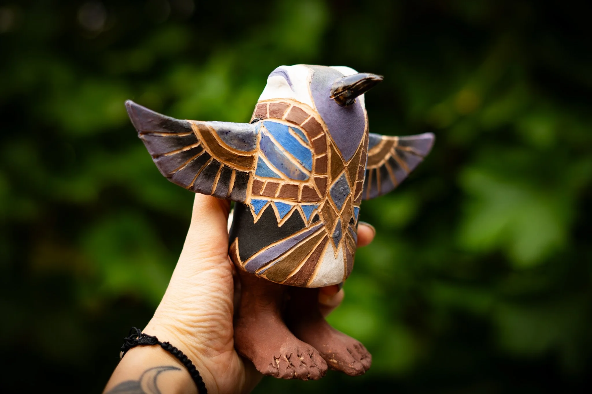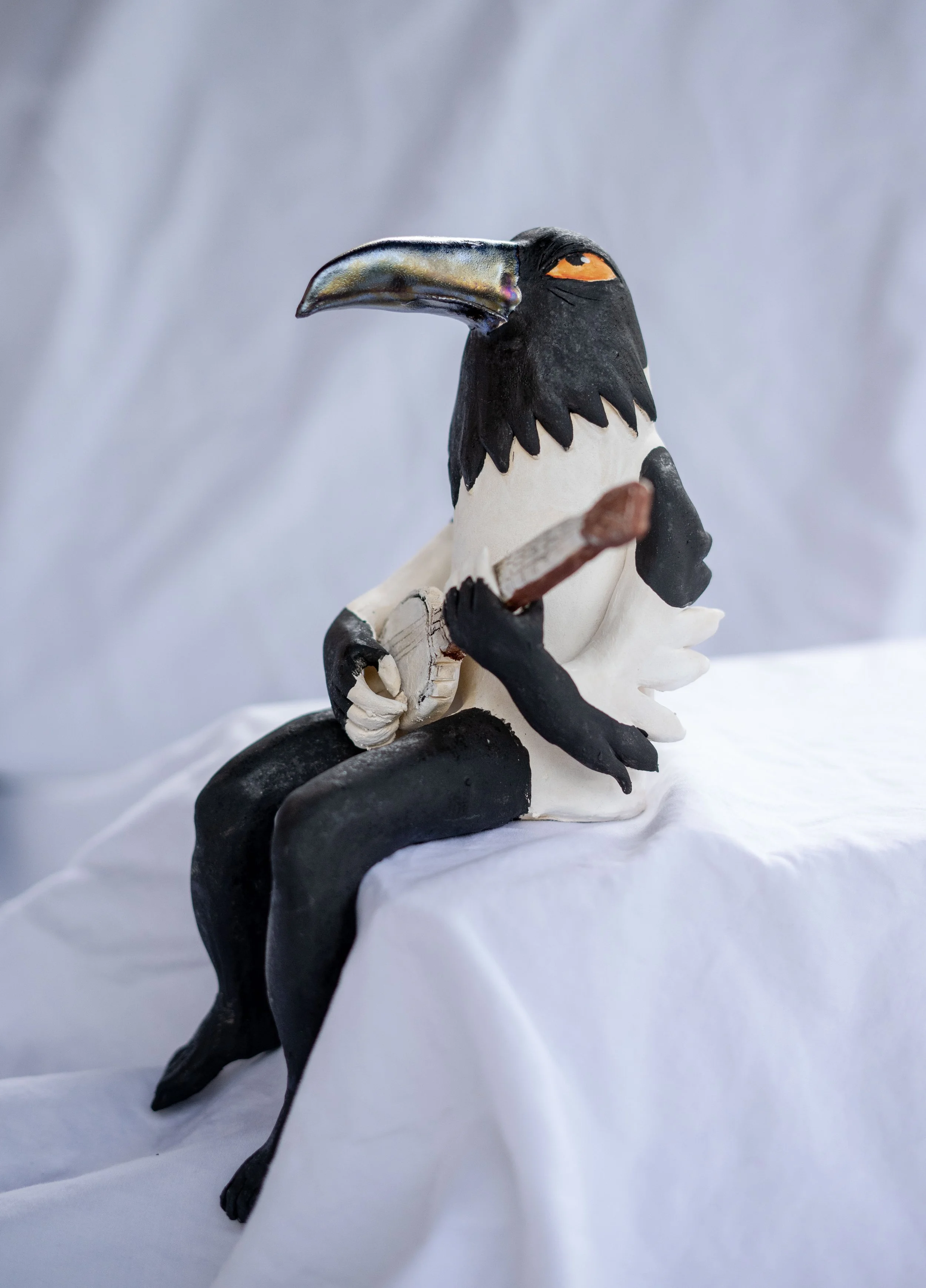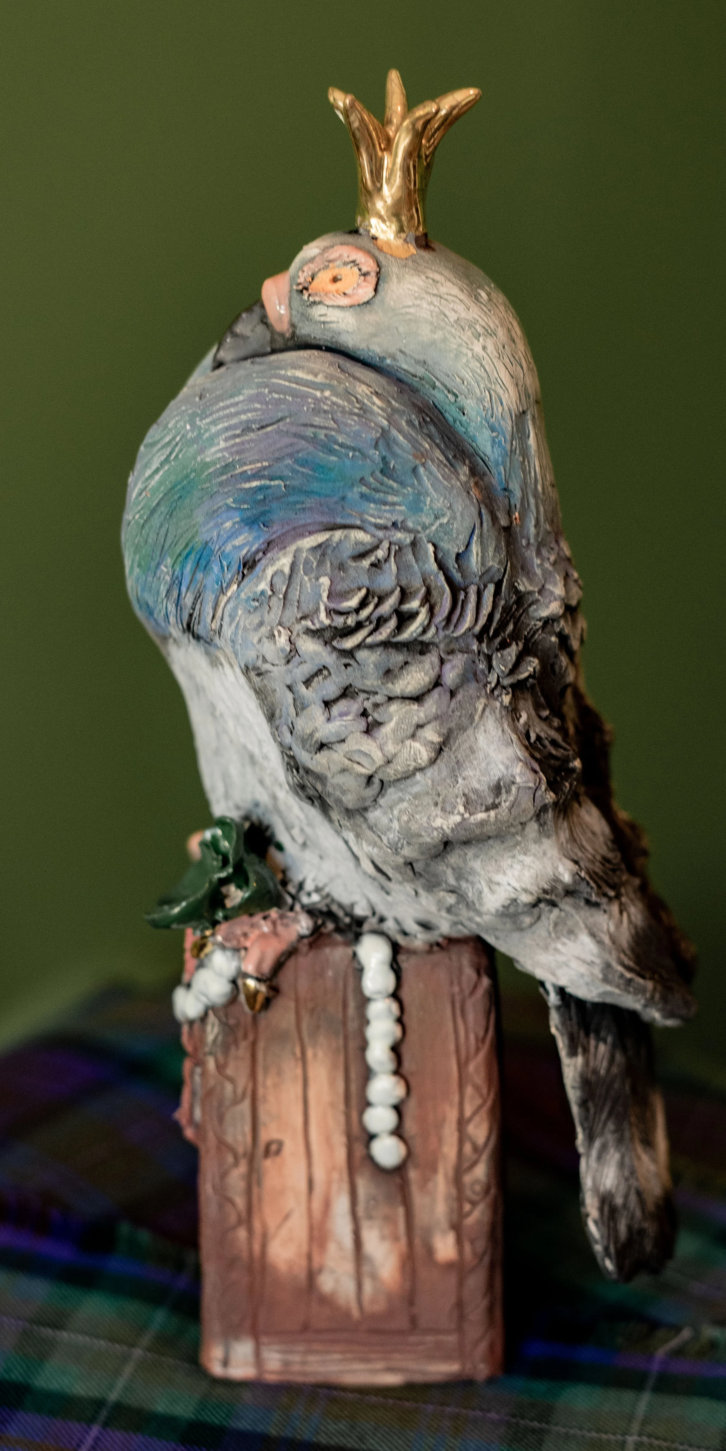 Categories: All Paintings Ceramics All | Paintings | Ceramics | Totemic Sparrow sculpture £120.00 Totemic Owl sculpture £120.00 Sitting figure £75.00 Magnus with banjo £165.00 Pigeon Queen £185.00 Hog Head Medusa £370.00