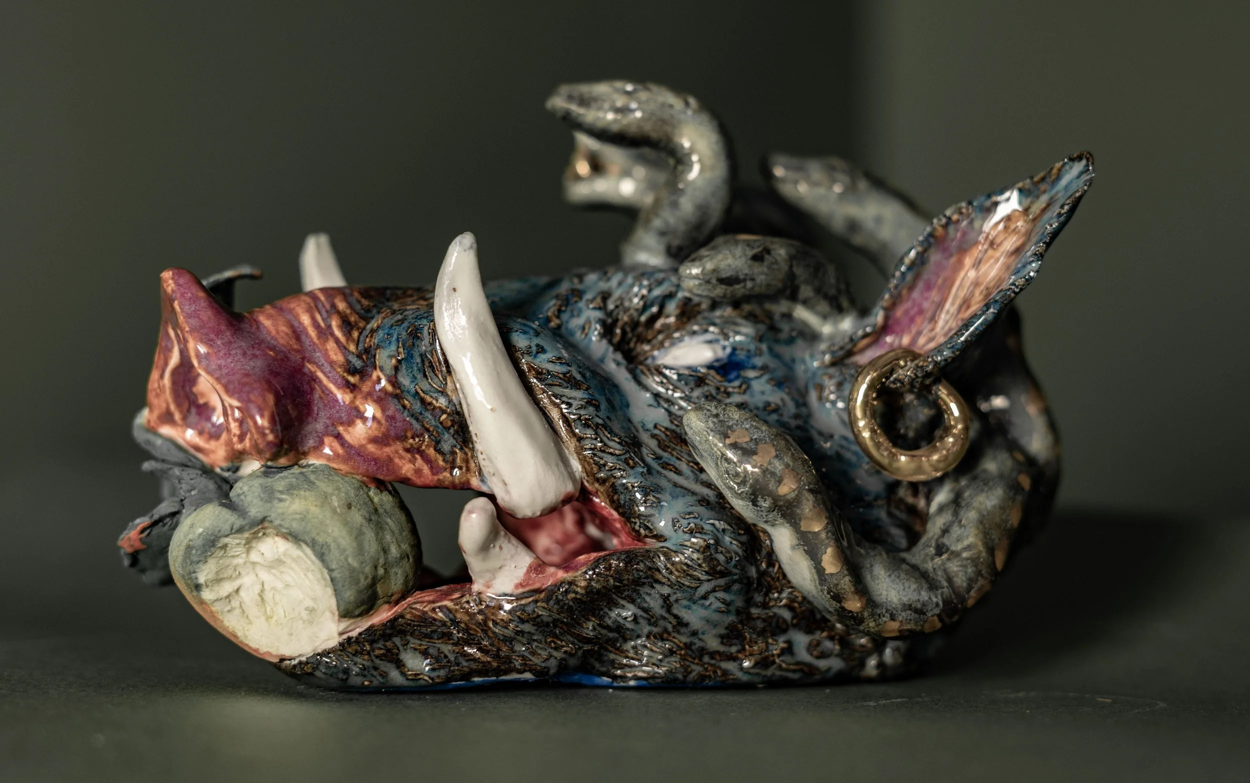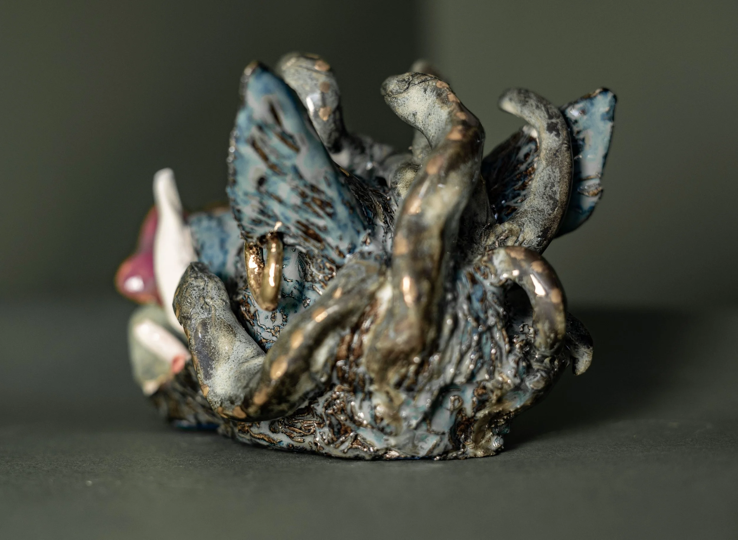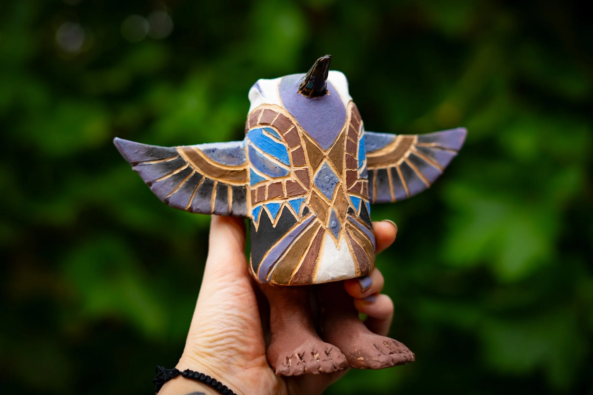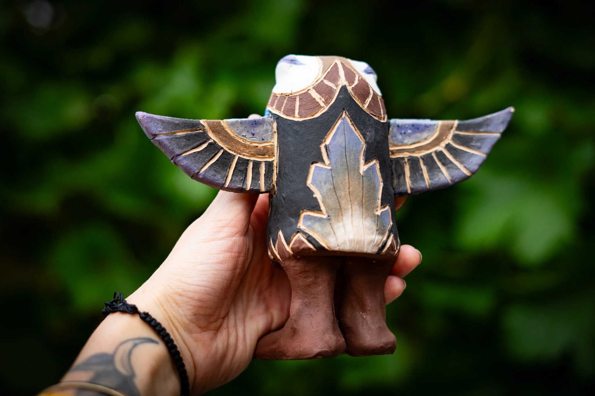 Categories: All Paintings Ceramics All | Paintings | Ceramics | Totemic Sparrow sculpture £120.00 Totemic Owl sculpture £120.00 Sitting figure £75.00 Magnus with banjo £165.00 Pigeon Queen £185.00 Hog Head Medusa £370.00